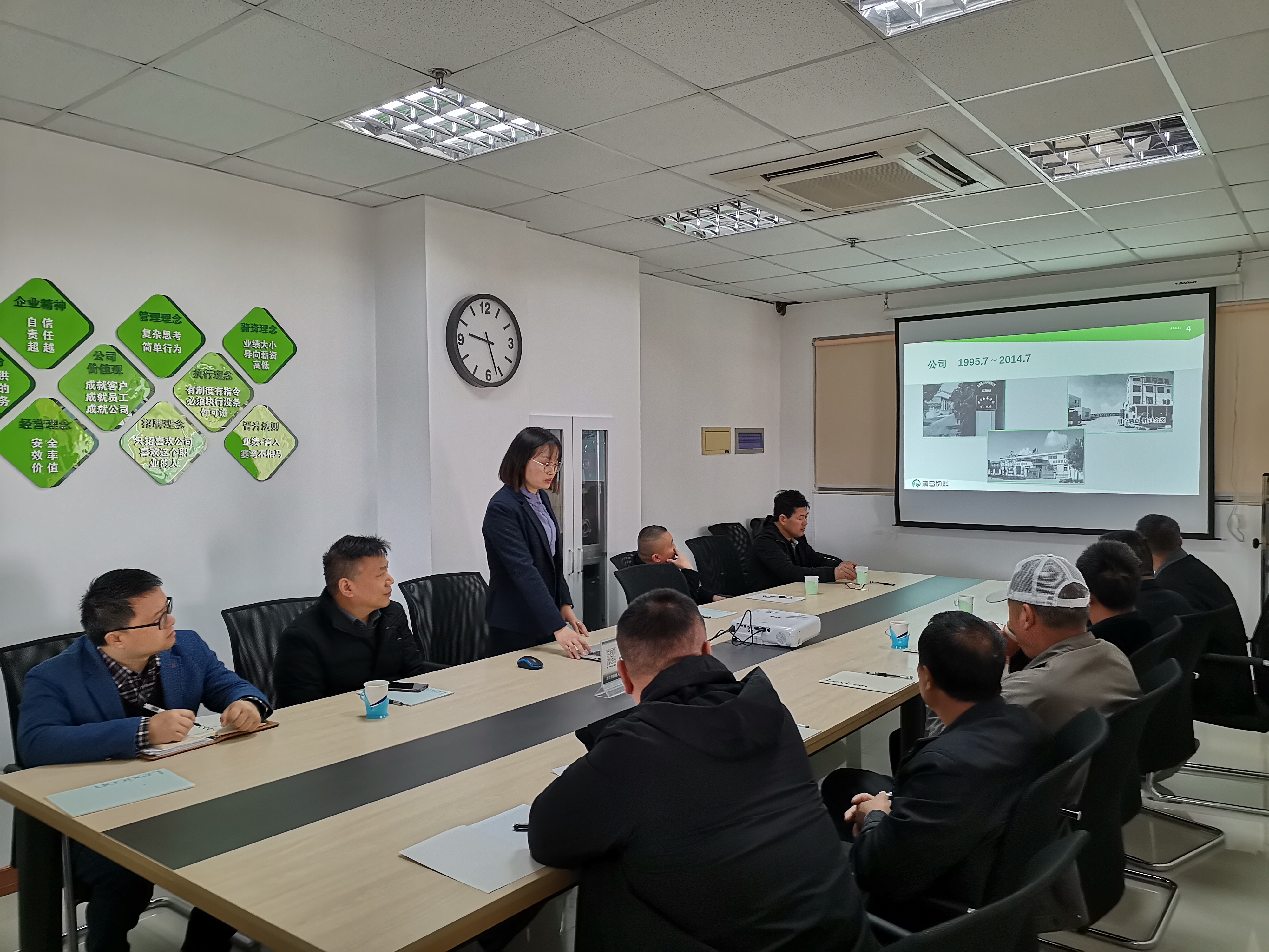 行政人事部賈經(jīng)理給大家介紹了公司發(fā)展歷程、管理團(tuán)隊組成、企業(yè)文化等內(nèi)容。