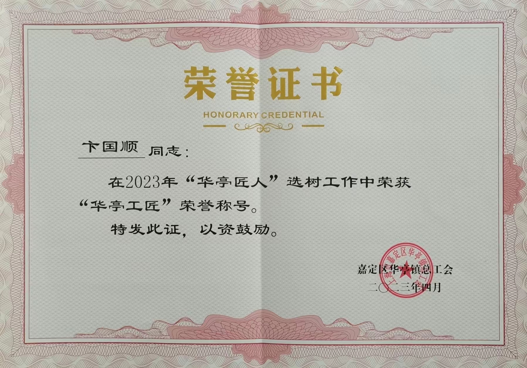 我司副總經(jīng)理卞國順先生和我司生產(chǎn)部分獲“嘉定華亭匠人”、“2022年度美麗班組”榮譽(yù)稱號