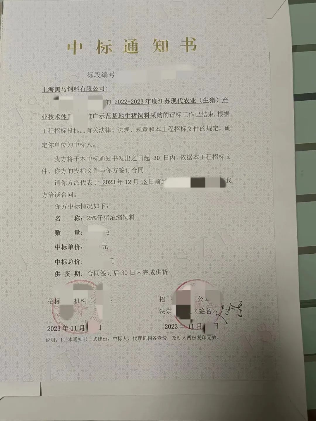 喜報 | 我司成功中標江蘇現(xiàn)代農(nóng)業(yè)飼料采購項目