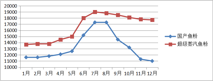 從上圖可以看出秘魯北部A季魚粉供應(yīng)幾乎為零時(shí)國(guó)內(nèi)魚粉價(jià)格出現(xiàn)巨幅上揚(yáng),在7-8月處于歷史最高位,超級(jí)蒸汽魚粉一度達(dá)到19000元/噸,并處于有價(jià)無貨狀態(tài)。7月后盡管有他國(guó)魚粉增加供應(yīng),補(bǔ)上部分市場(chǎng)需求,但因魚粉蛋白偏低,對(duì)高端魚粉市場(chǎng)影響有限,至今為止高品質(zhì)魚粉市場(chǎng)仍受到強(qiáng)勢(shì)支撐。