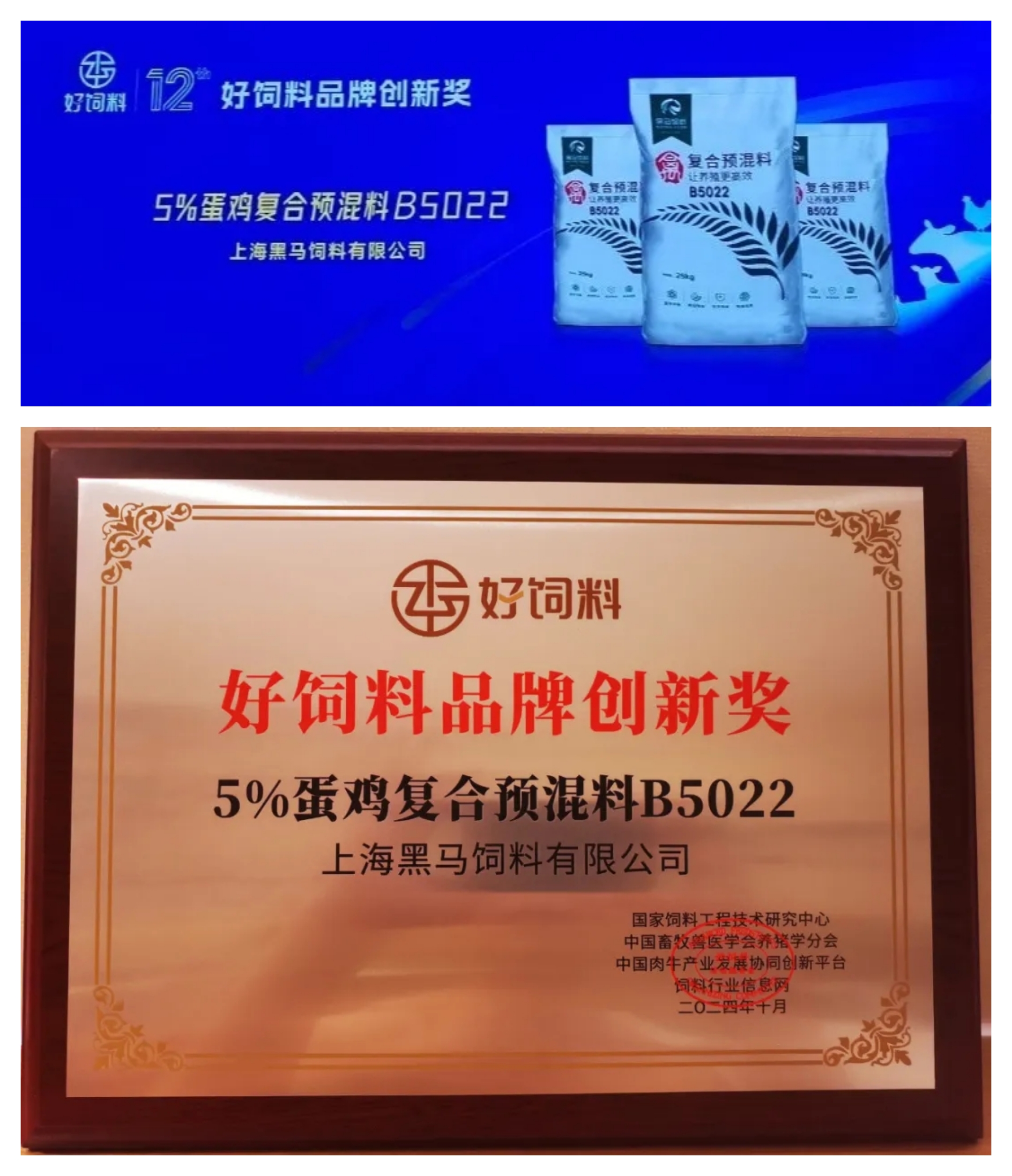 我司5%蛋雞復(fù)合預(yù)混料B5022產(chǎn)品榮獲“中國好飼料2024——好飼料品牌·創(chuàng)新獎”。